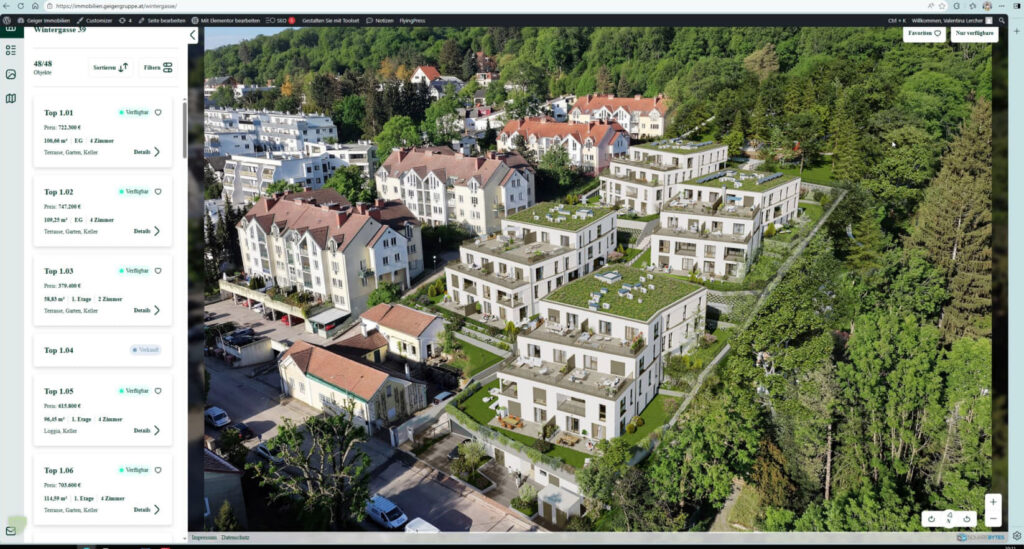 Klicken Sie einfach rechts oben auf “Wohnungen” und wählen Sie das Projekt Purkersdorf aus.